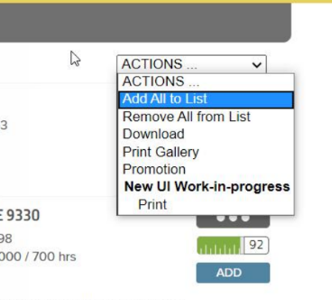 b. On the My Inventory page of MachineFinder Pro, select the ‘Add All to List’ from the dropdown. All units will show “Added” in the list.
