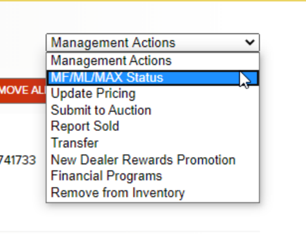 d. In the Management Actions dropdown, select “MF / ML / MAX Status.”